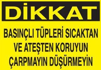 Dikkat Basınçlı Tüpleri Sıcaktan ve ateşten koruyun Çarpmayın Düşürmeyin Uyarı Levhası