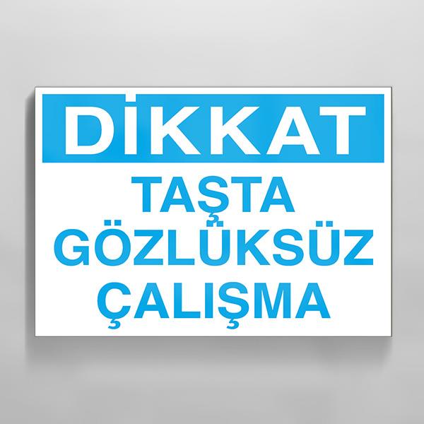 Dikkat Taşta Gözlüksüz Çalışma Uyarı Levhası
