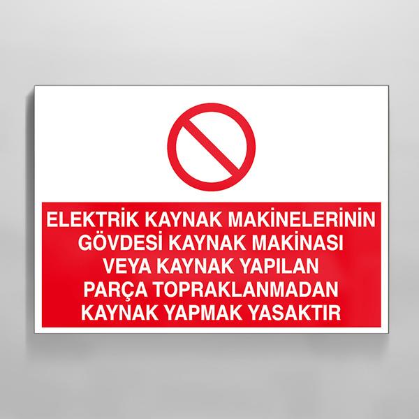Elektrik Kaynak Makineler Gövdesi Kaynak Makinası Yapılan Parça Topraklarından Kaynak Yapmak Yasaktır Uyarı Levhası