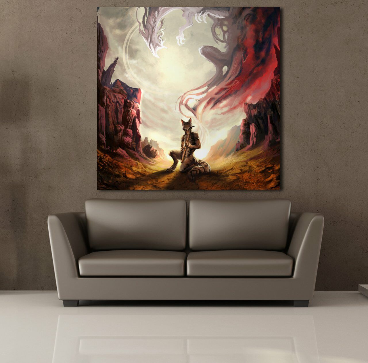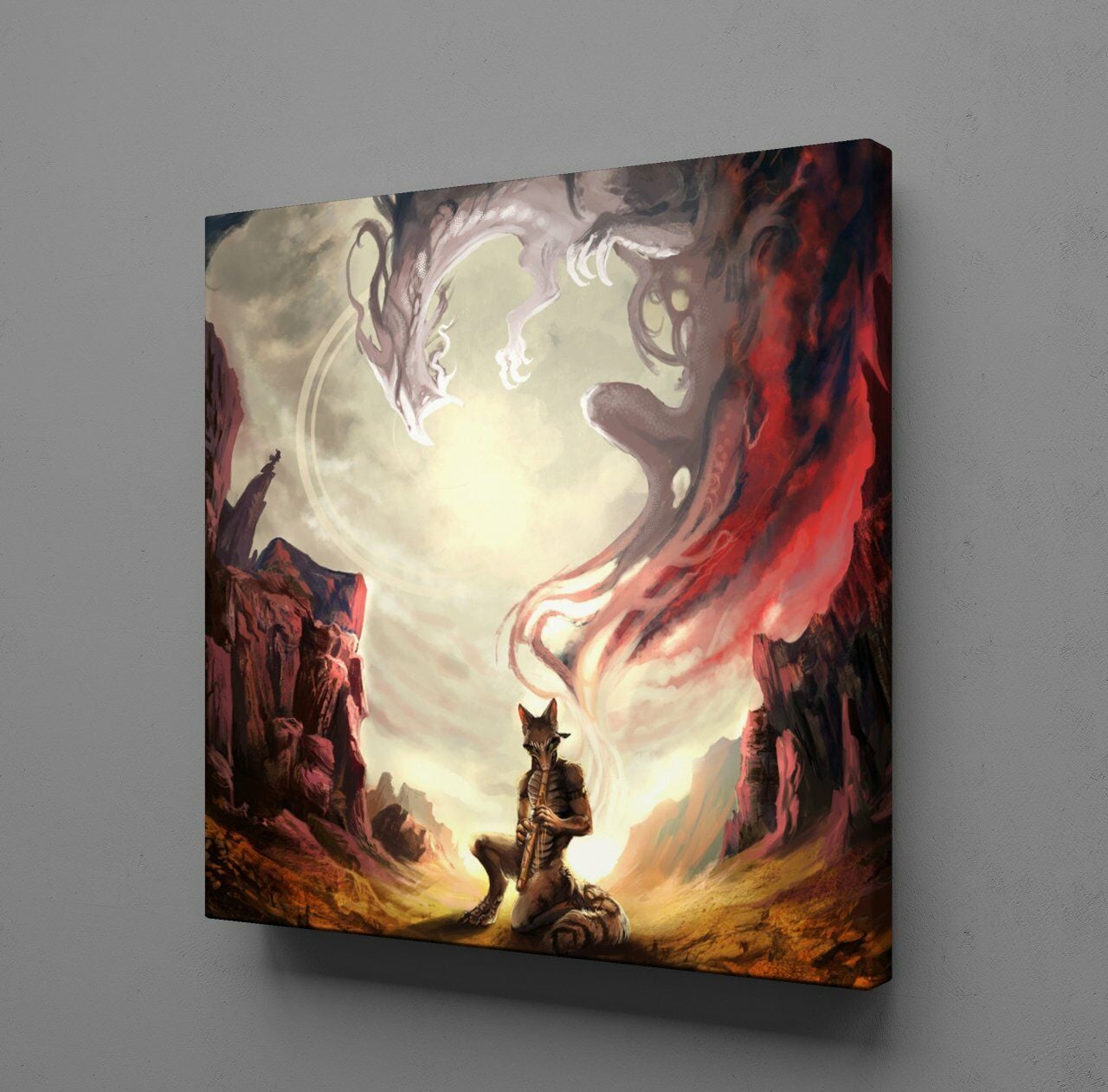 FLÜT ÇALAN KURT KANVAS TABLO