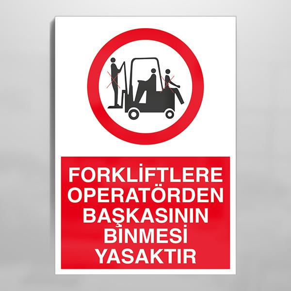 Forkliflere Operatörlerden Başkasının Binmesi Yasaktır Uyarı Levhası