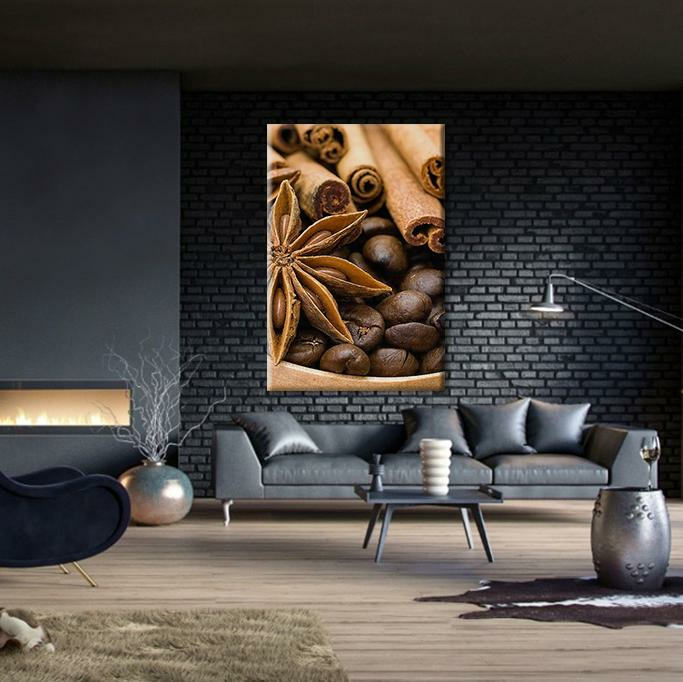 Kahve Çekirdeği Ve Tarçın Kanvas Tablo