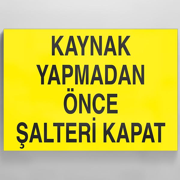 Kaynak Yapmadan Önce Şalteri Kapat Uyarı Levhası