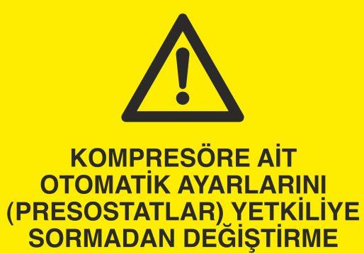 Kompresöre Ait Otomatik Ayarlarını Prostatları Yetkiliye Sormadan Değiştirme Uyarı Levhası