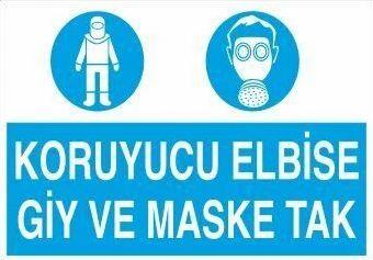 Koruyucu Elbise Giy Ve Maske Tak Uyarı Levhası