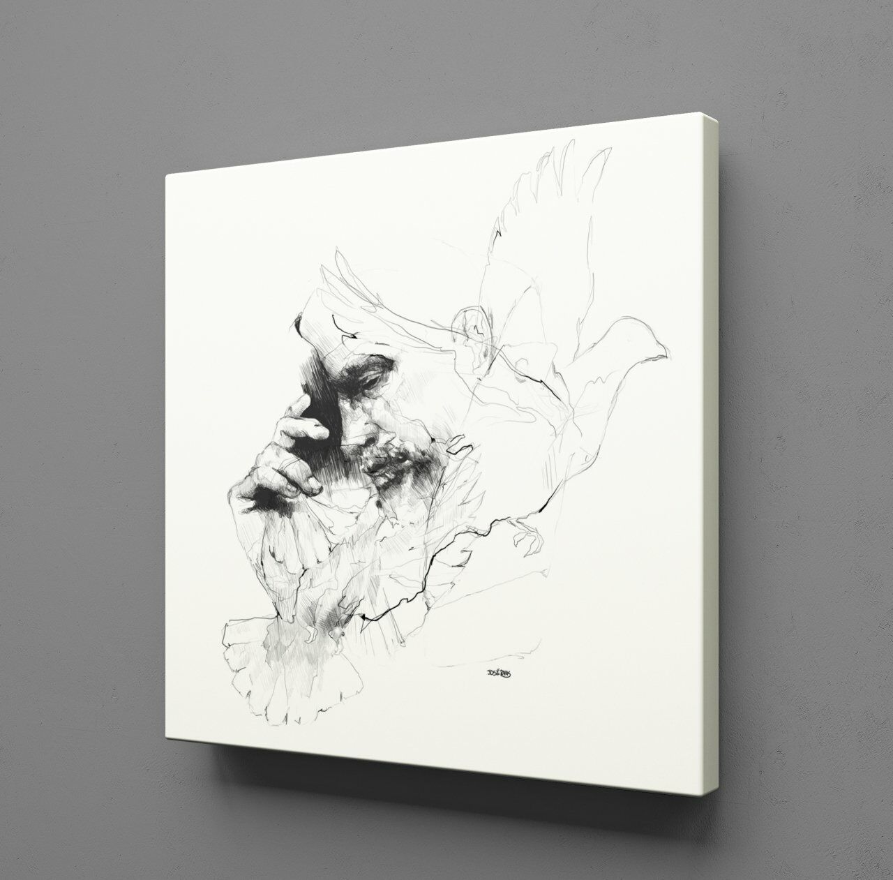 KUŞ VE ADAM KANVAS TABLO