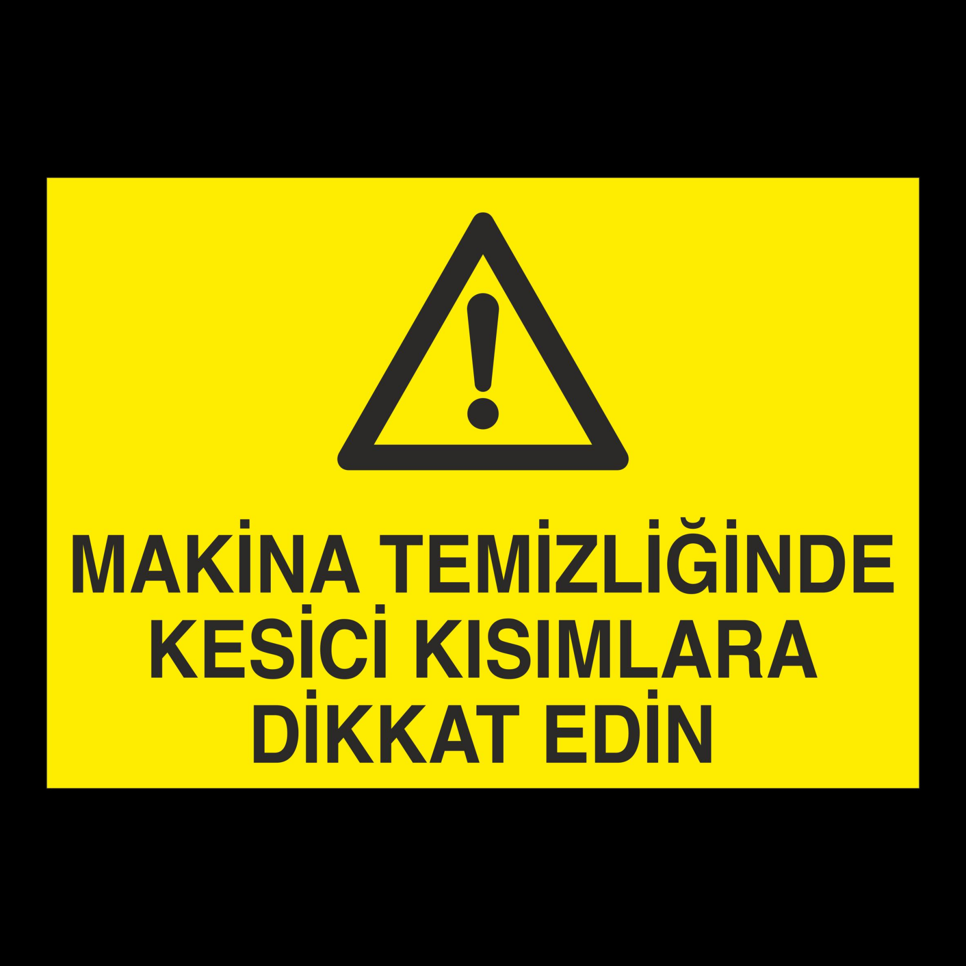 Makina Temizliğinde Kesici Kısımlar Dikkat Edin Uyarı Levhası