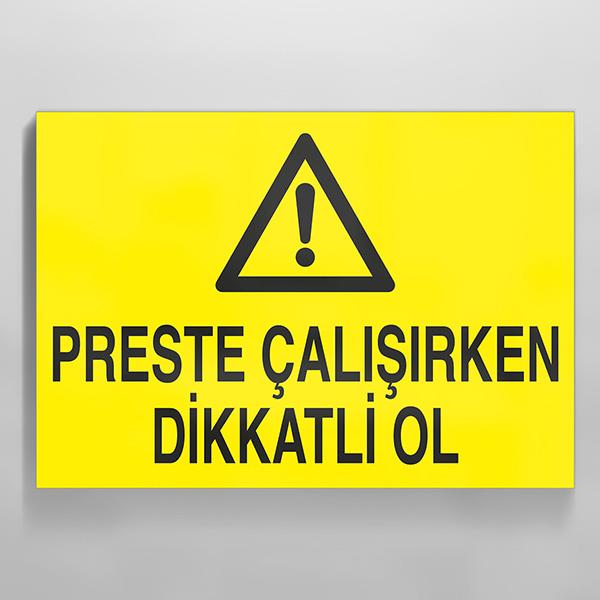 Perste Çalışırken Dikkatli Ol Uyarı Levhası