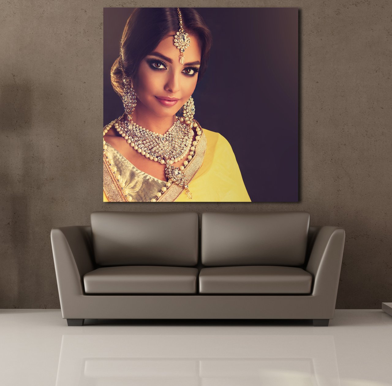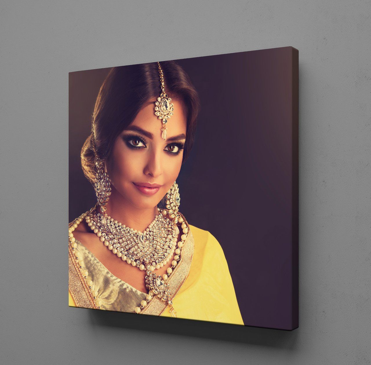 SARI ELBİSELİ HİNTLİ KADIN KANVAS TABLO
