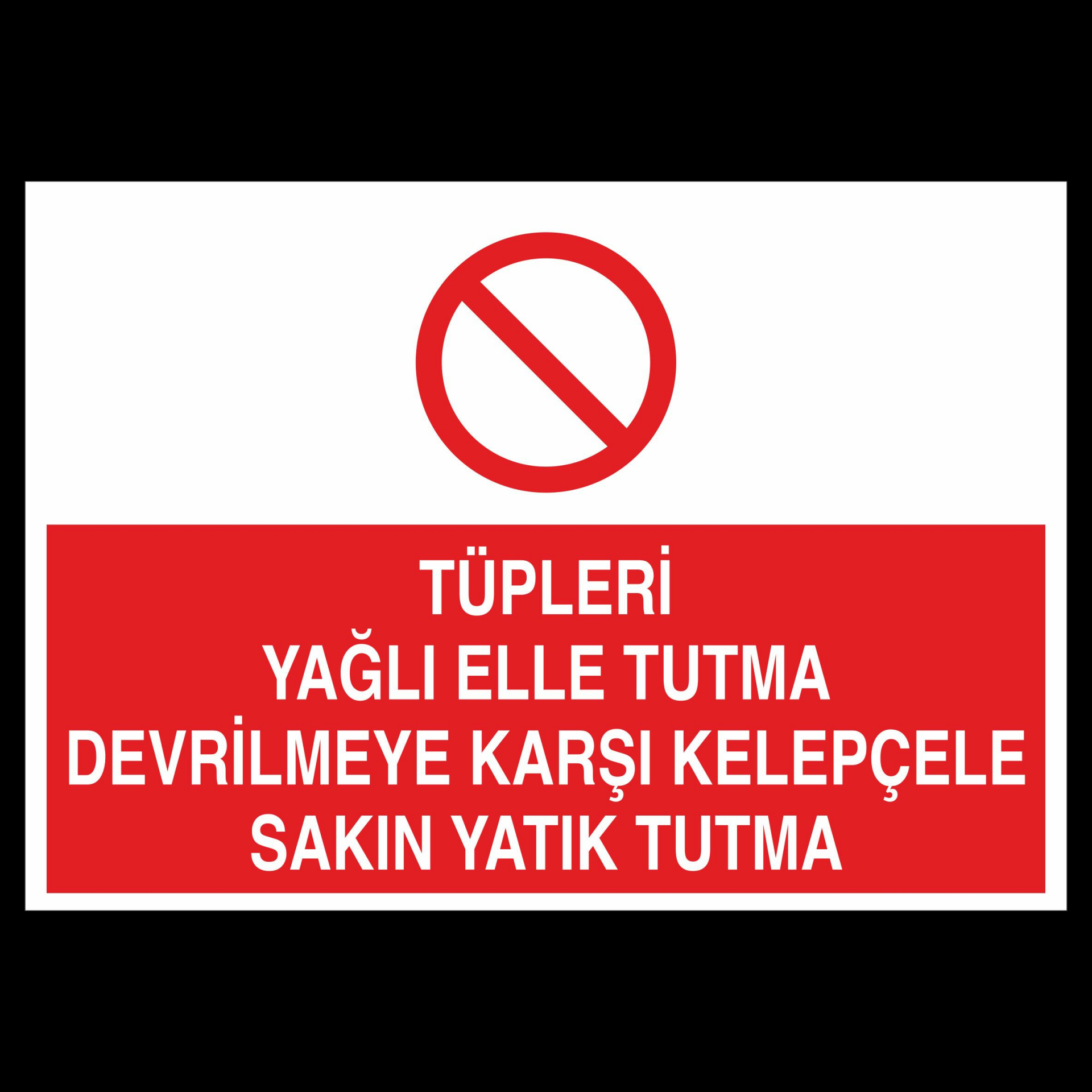 Tüpleri Yağlı Elle Tutma Devrilmeye Karşı Kelepçele Sakın Yatık Tutma Uyarı Levhası